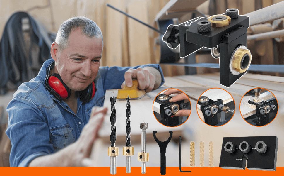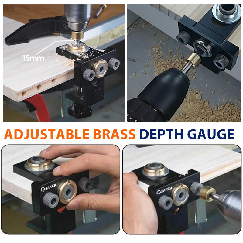 These 3 in 1 adjustable woodworking drilling locator puncher tools set are small and portable, convenient for woodworking tool puncher positioner. High accurate scale, easy to adjust drilling height and hole depth. Within self tighten clamp, convenient to fixing drill guide on the wood.