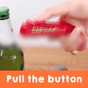 Our Cap Gun opens bottles and then shoots the cap across the room. Simply pull the slide back, open your bottle, and pull the trigger to fire. You'll never open bottle normally again!