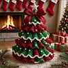 Create a stunning, layered crochet Christmas tree with red/green/white colors and pearl embellishments. Perfect for tabletops, mantels, office desks, or as a unique handmade tree topper.