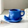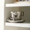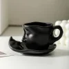 [UNIQUE TEA CUP AND SAUCERS] creative cups and saucers with human face design, very much like a pair of lovers whispering, or gazing at each other, or kissing, telling the heart, expressing love, the unique design expresses the taste of your personality, your colleagues and friends will praise you
