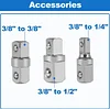 - Multiple Square Drive Adapters: Includes 1/4", 3/8", and 1/2" adapters, allowing compatibility with a wide range of sockets.