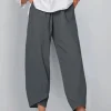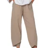 The pull-on closure and elastic waistband make it super easy to get on and off. Loose style, more relaxed waist make it the most suitable. The solid color makes it easy to match a t-shirt or a blouse. Straight wide cut cotton pants with pockets for women. Suitable for spring and summer.