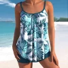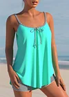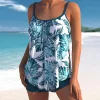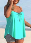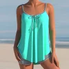 A printed tank top and solid color shorts will give you the confidence to get outside, ideal for volleyball and swimming, conservative but still in shape.